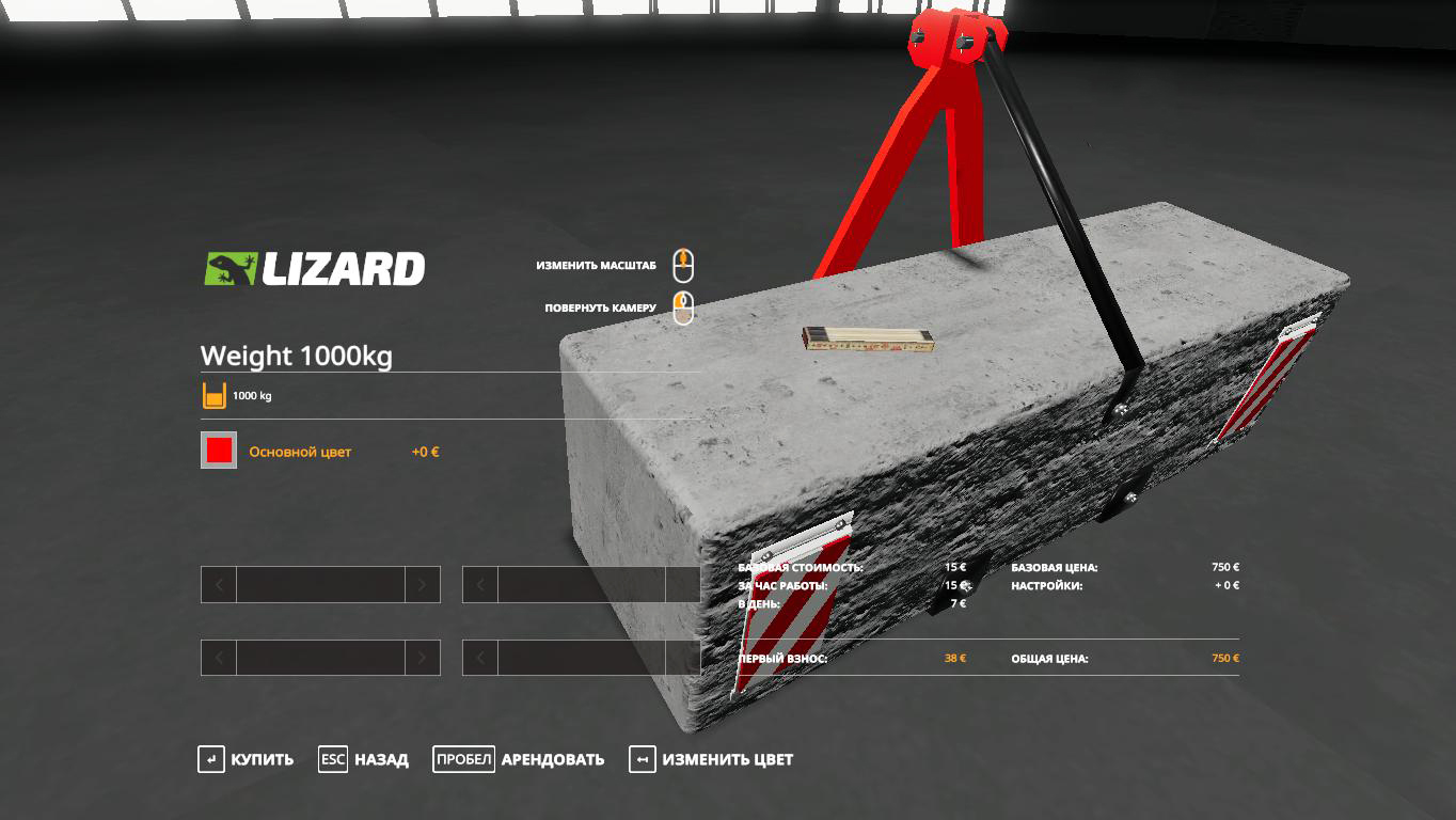 MOD WEIGHT 1000KG V1.0.0.0 FOR FARMING SIMULATOR 2019 Concrete counterweight. Weight: 1000 kg, color choice (triangle).