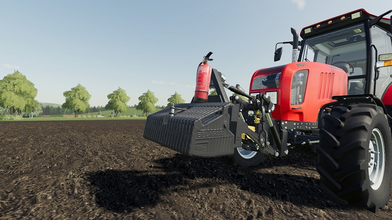 Counterweight for MTZ with a front hitch. Weight 1000 kg. Calmly works with a 1523 hitch. Of the configurations, there is an installation of a fire extinguisher on a counterweight. There will be updates in the future. Credits: Sania1996, RusAgroTech |