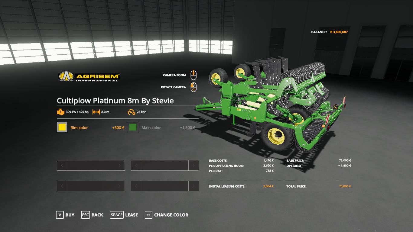 Ok this is my FS19 cultiplow and it ploughs and cultivates in one pass. Added colour choice to body and rims, added rear beacon light, faster operating speed and full plough field creation support. This is not suited for tight field spaces as the turning radius is 5m and if the AI can't make it they will do a wider reverse turn. Have fun with it. |