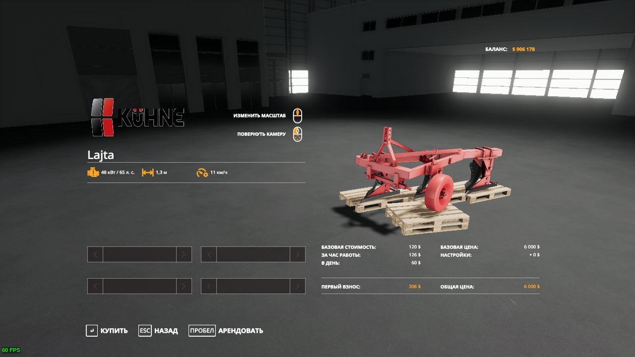 Price: 6000 € working speed: 11 kmh Required power: 65 hp Working width: 1.3 m Maintenance: 10 € / day Credits: Tarczi007,Unorby,Realistic Farmers |