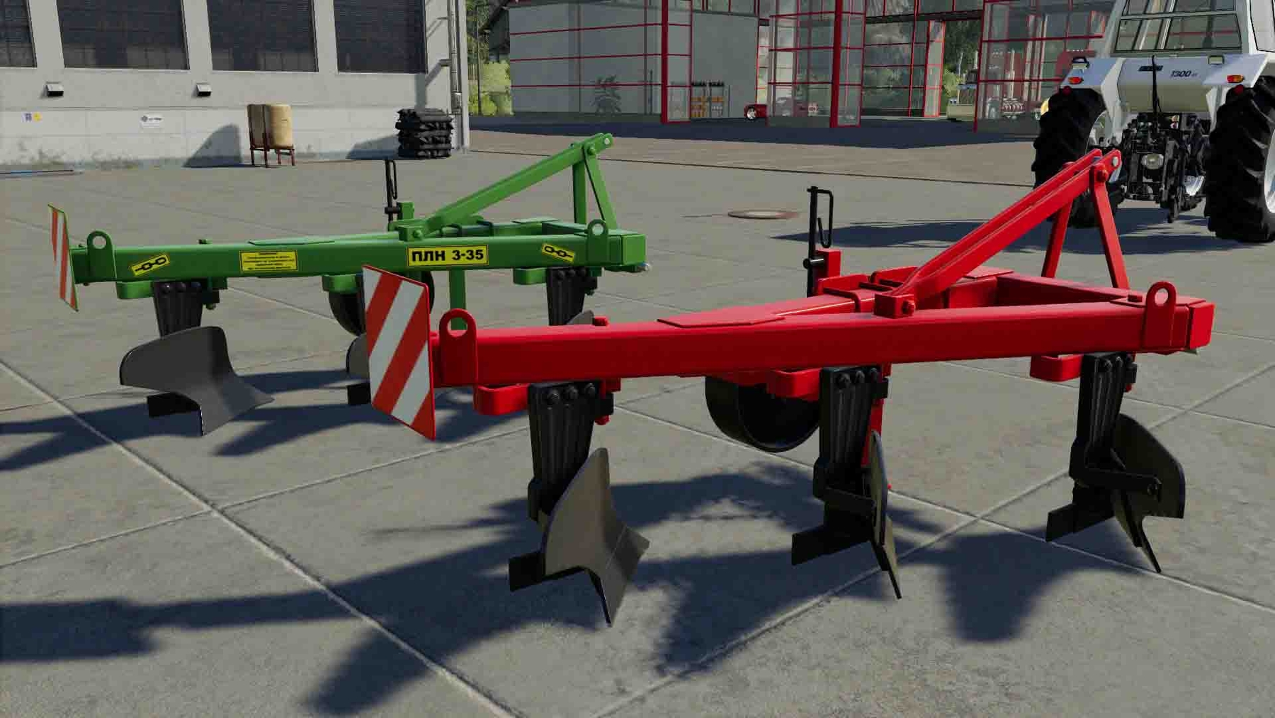 MOD PLN 3-35 V1.0 FOR FARMING SIMULATOR 2019 - Cost: 1 200 €; - Working width: 1.1 m .; - Working speed: 12 km / h; - Recommended tractor power: 52 kW / 7 hp; - Choice of the main color; - Choice of design, with or without stickers; - Animation of the land when plowing; - Leaves traces; - Gets dirty and washed.