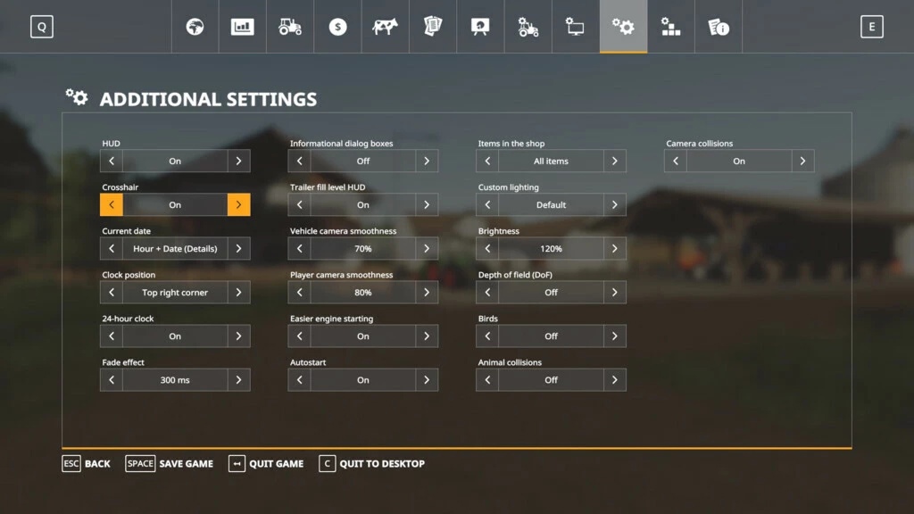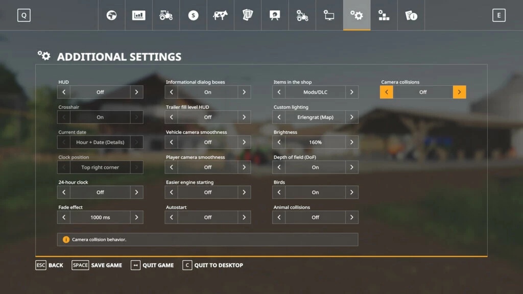 Mod Additional Game Settings v1.1.0.0 for Farming Simulator 2019