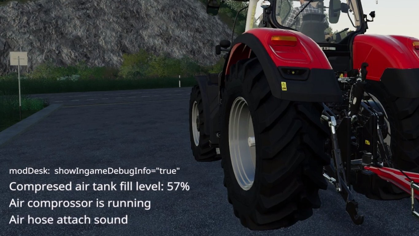 When the compressed air hoses of the trailer are connected to the tractor, you hear a hissing sound and the compressed air enters the air reservoir of the trailer. Hiss can also be heard when the compressed air hoses are removed. If there are no dynamic hoses in the trailer mod yet, then there will be no hiss. This also applies to trailers that only have hydraulic hoses because they are braked by hydraulic pressure and not air pressure.