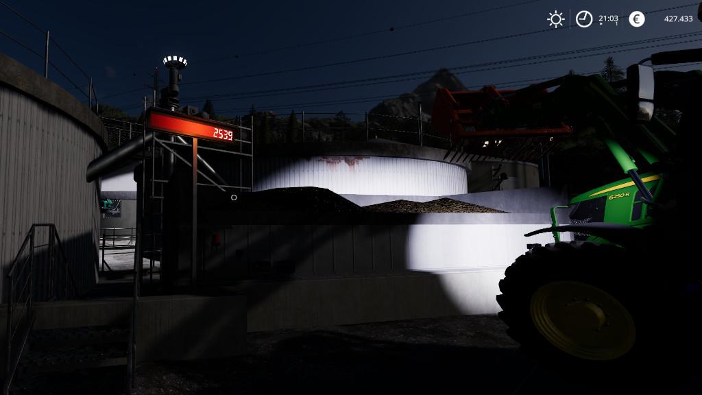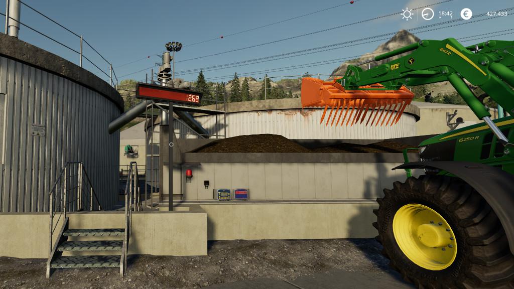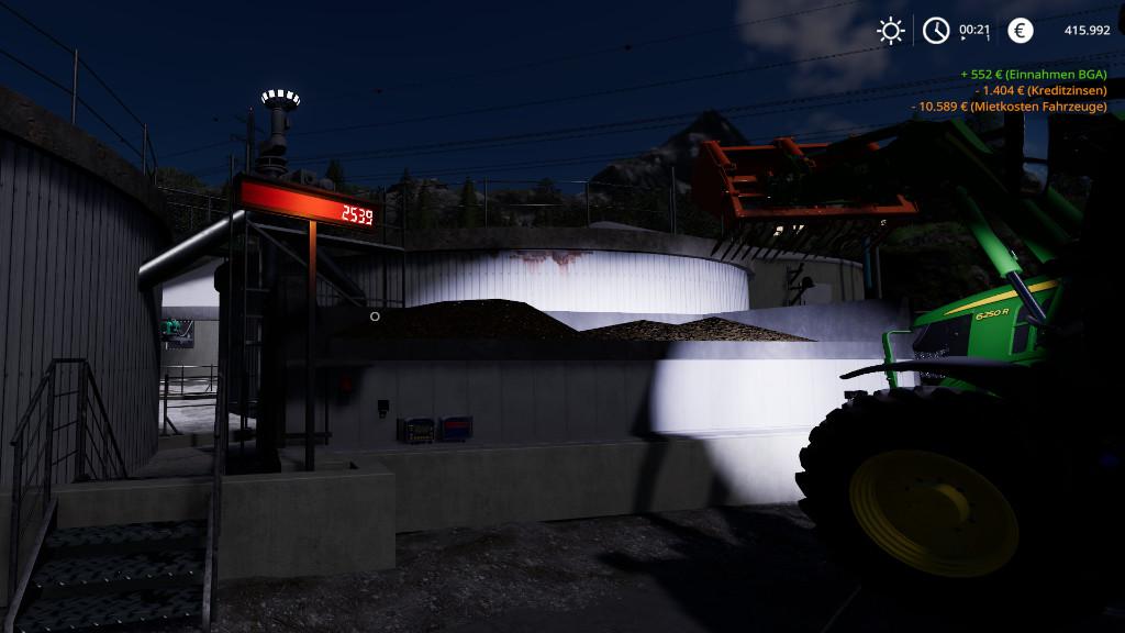 The bunker feeds the biogas plant with material twice a day for one hour (7 am and 7 pm).