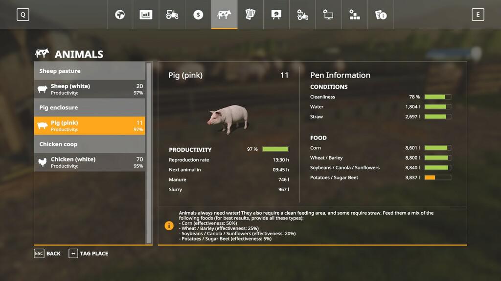 - Fixed overflow of food groups with several types of food (affects chickens, pigs and sheep).