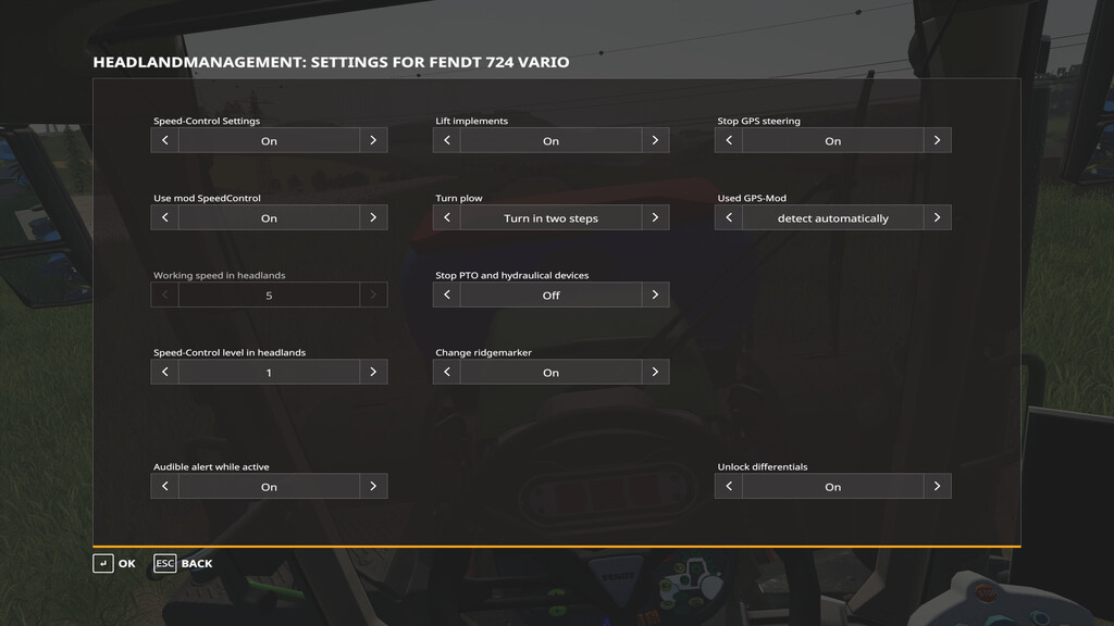 - If cruise control is active when headland control is activated, it will be activated again when headland control is deactivated again. Credits: Jason06 / Glowins Modschmiede |