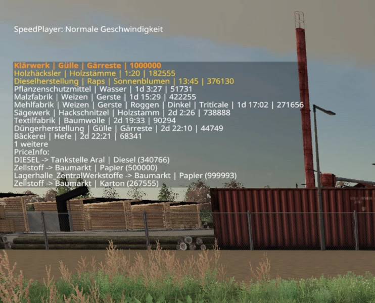 Designed for NF March, but compatible with all Global Company projects. Sales opportunities are also shown, where you can sell goods from production or from storage at the best prices if the Tunisian sales price indicator is activated and only if there is also a certain quantity in stock. This is the first version I release. Since the documentation is terrible from a programmer's point of view, I could only find out by studying other mods. Should work in multiplayer and on servers, but could not test it. Bug reports and suggestions for improvement are welcome.