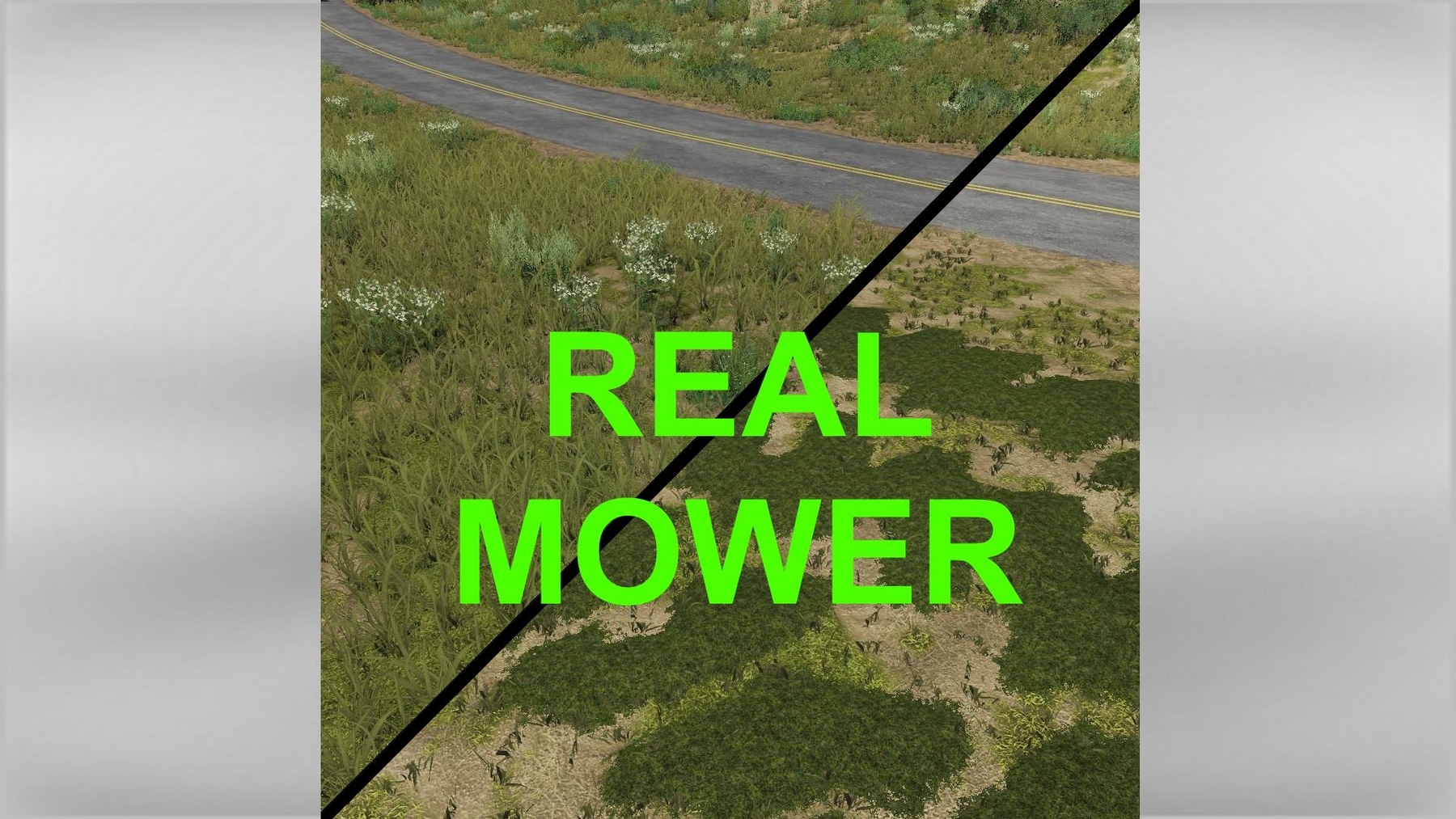 Mod REAL MOWER V1.0.0.0 for Farming Simulator 2019 With this mod, your mowers will cut all weeds (flowers, bushes, ...) on grassy meadows outside the fields. -function added to all vehicles with the specialization of “mower” -you can activate / deactivate the mod function for the current car Management: KEY_o - enable / disable the mod for the current car If you find any errors or problems, let me know in the comments or at kenny456@seznam.cz, and I will fix this in the next version.