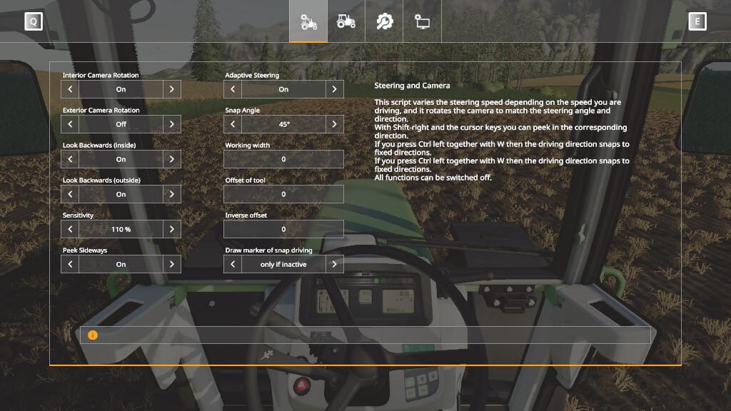 This script varies the steering speed depending on the speed you are driving, and it rotates the camera to match the steering angle and direction.