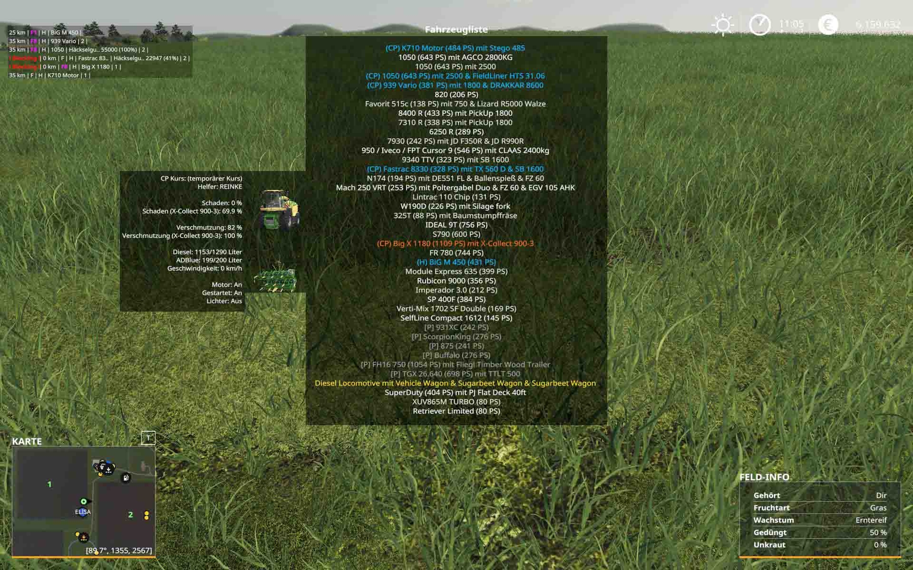 LAlt + v -> Show/hide vehicle list LAlt + KeyPad Minus -> Show/hide config menu KeyPad Enter -> Enter vehicle LAlt + p -> Toggle parking LAlt + KeyPad 5 -> Select item (for moving the vehicle) or to change values in the config LAlt + KeyPad 8 -> Move up in the list/config LAlt + KeyPad 2 -> Move down in the list/config LAlt + 1 -> Move up fast in the list/config LAlt + 2 -> Move down fast in the list/config LAlt + R -> Repair vehicle incl. implements Tab -> Next vehicle; VeEx own switch vehicle implementation (necessary to tab through vehicles in your own order) Shift + Tab -> Previous vehicle; VeEx own switch vehicle implementation (necessary to tab through vehicles in your own order |