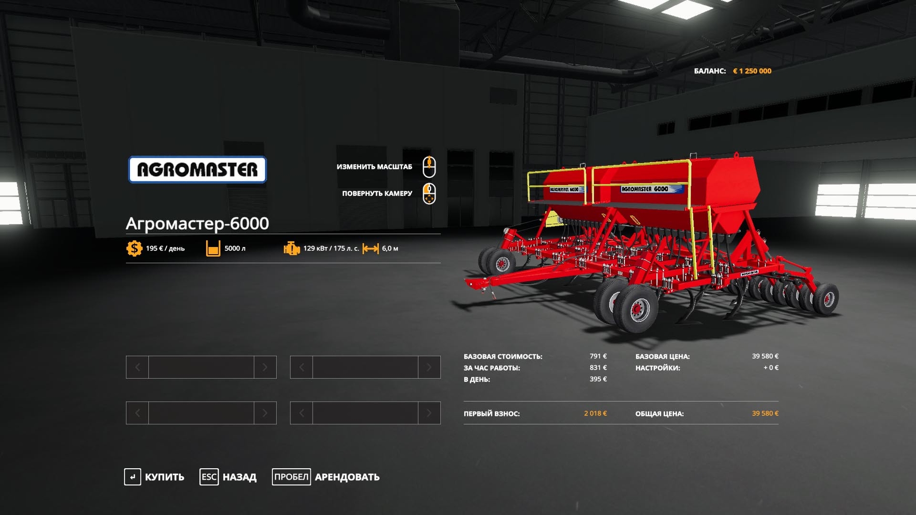 MOD AGROMASTER 6000 V2.0.2.1 FOR FARMING SIMULATOR 2019 The price is 39580, the required power is 175 hp, the capture is 6 meters. Removed some of the textures, shaders, taken from the game. Thus, the size of the archive has been reduced from 23MB to 15.79MB. Minor corrections. Words of the author Credits: Weder |