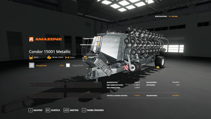 Мod Amazon Condor 15001 Metallic Edit v1.3 for Farming Simulator 2019 Version 1.3 Modified Seeder The following changes have been made: The mod has been tested! Credits: MasterBlack Modding |