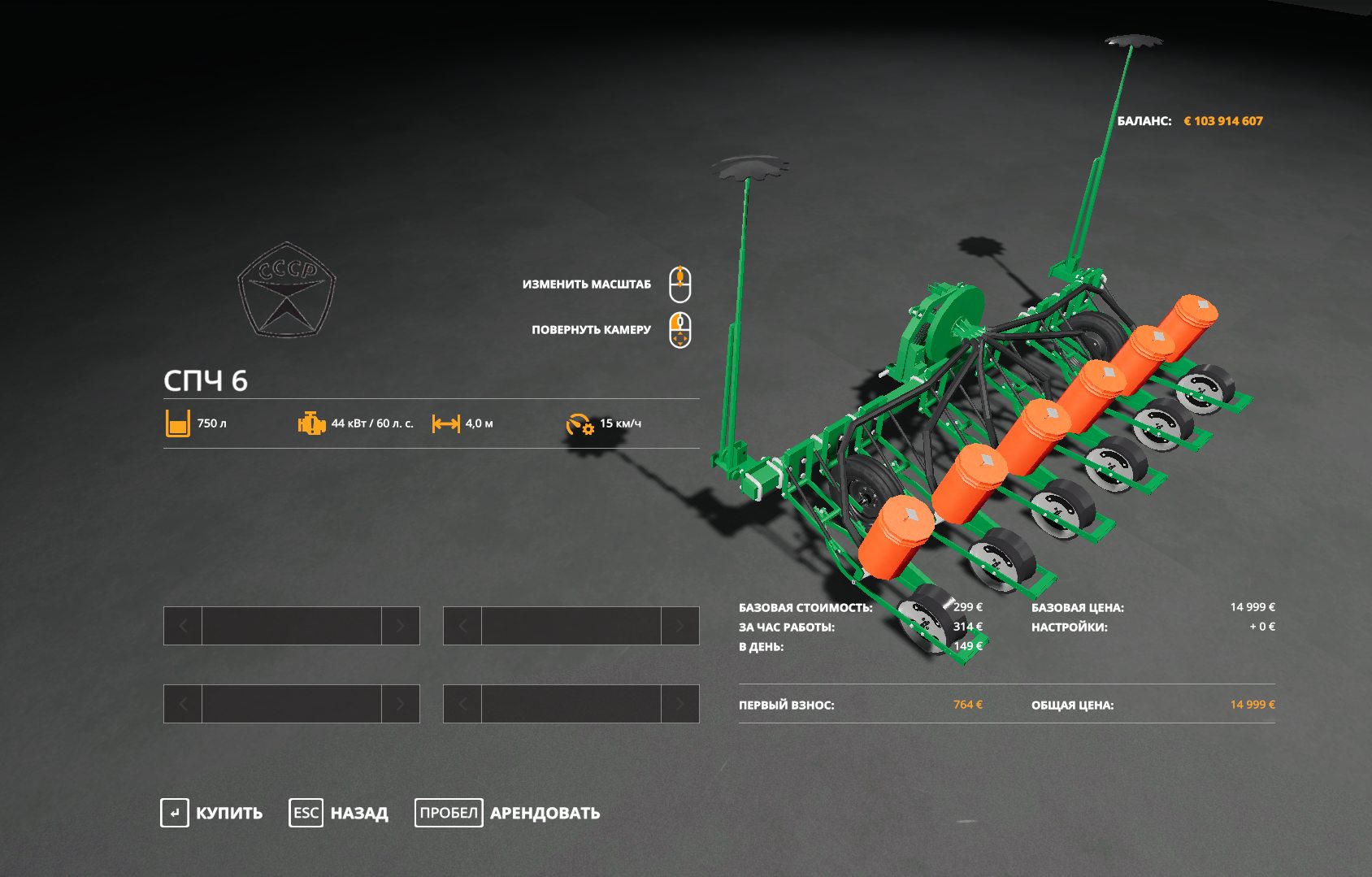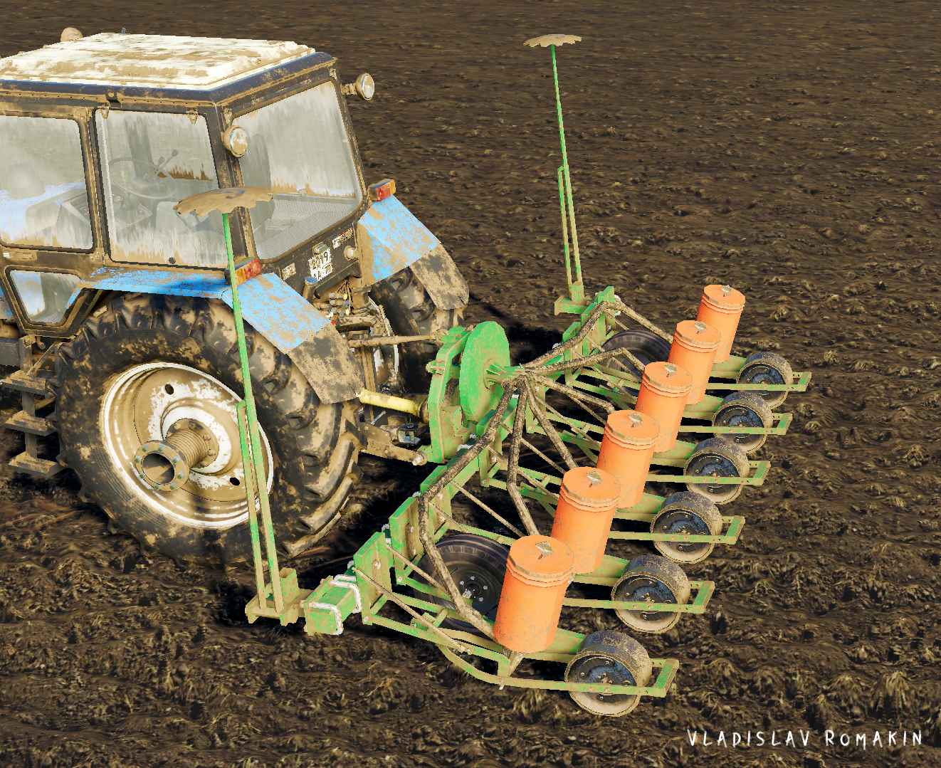 - Recommended tractor power: 44 kW / 60 hp; - Sows corn, sunflower, soybeans, beets, cotton; - Working width: 4 m .; - Volume: 750 liters; - Working speed: 15 km / h; - Cost: 14 999 €; - New wheels and new textures; - It gets dirty and washable, there is also wear. Authors Alexander (BAUER), Relax.