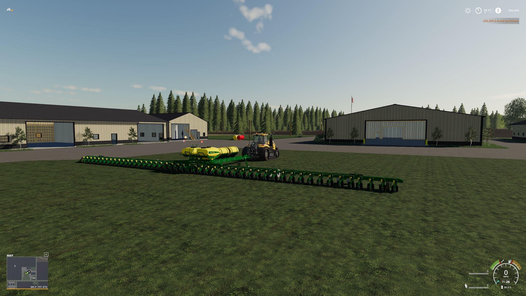 John Deere DB120 for FS 19 Required power: 325 hp Working width: 36 m Price: 472029 Euro Category: Planters