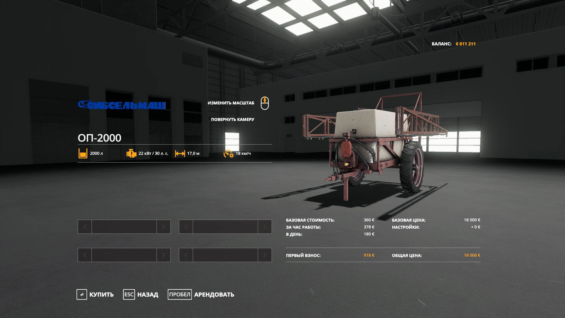 The volume of a sprayer is 2000 liters, working width is 17 meters, the price is 19 000. Credits: scholl |