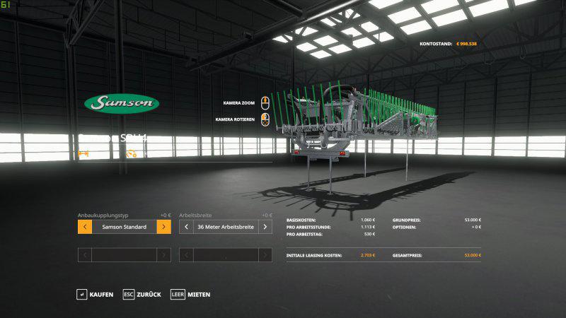 MOD SAMSON SBH4 V1.0.0.0 FOR FARMING SIMULATOR 2019 Fertilizer spreader for FS19. Samson Agro SBH4 boom with 4 distributors of different working widths. Can be configured for Vredo VT 7028-3 as well as all Samson Agro slurry tanks. Mod features: Credits: AKL, FlorianG |