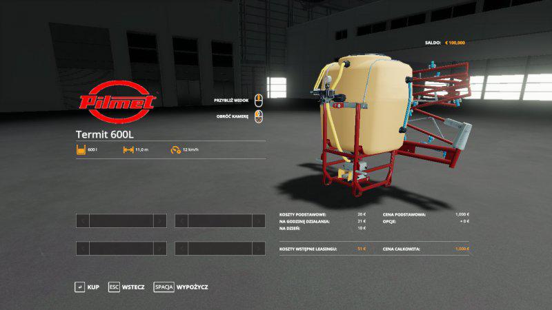Мod TERMIT NOWY v1.0.0.0 for Farming Simulator 2019 Working width 11.0 m. Working speed 12 km / h Volume 600 L Price 1000 Euro Termite with new textures that glow.
