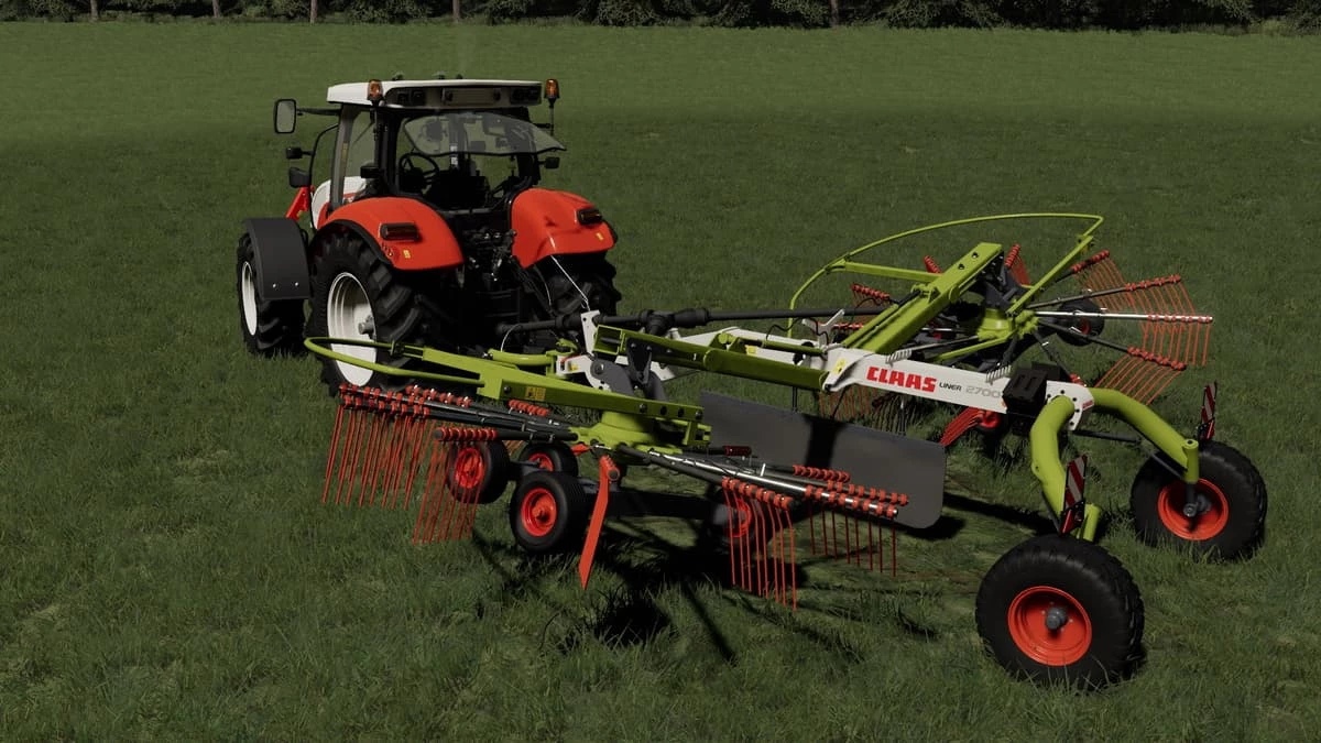 The Claas Liner 2700 is a medium-sized rake from Claas designed for working in the fields.