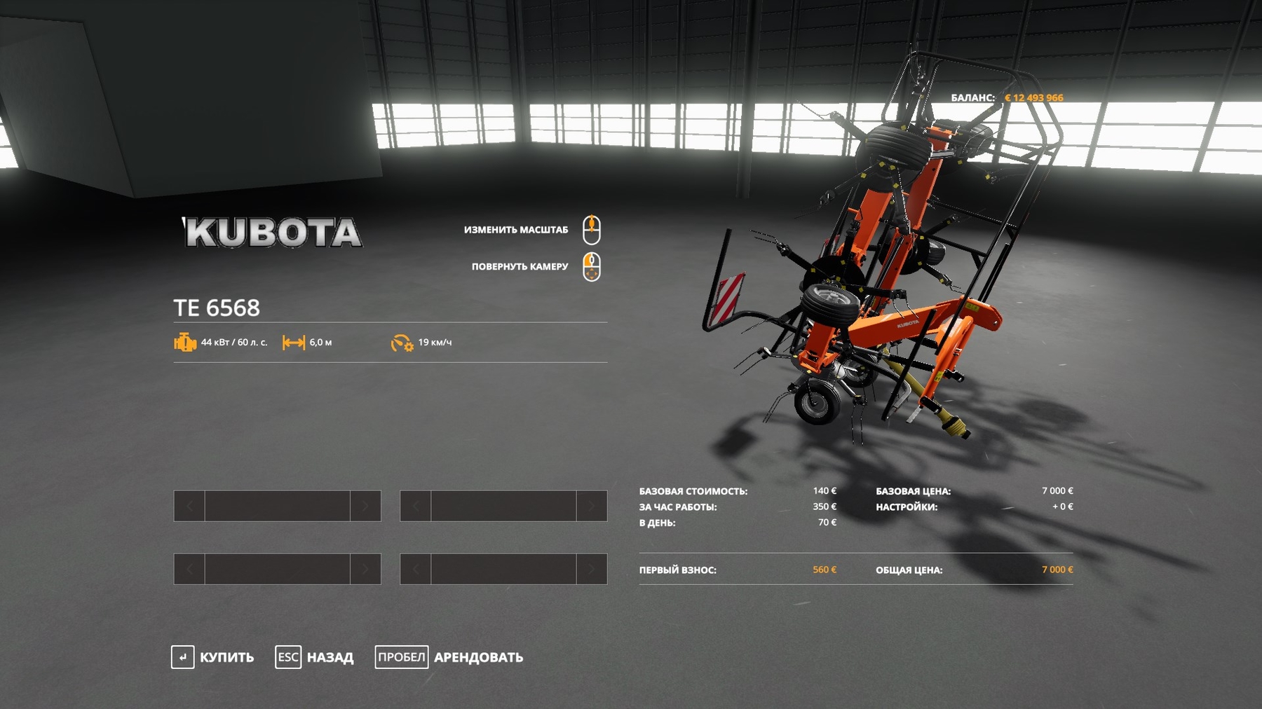 Мod KUBOTA TE6568 for Farming Simulator 2019