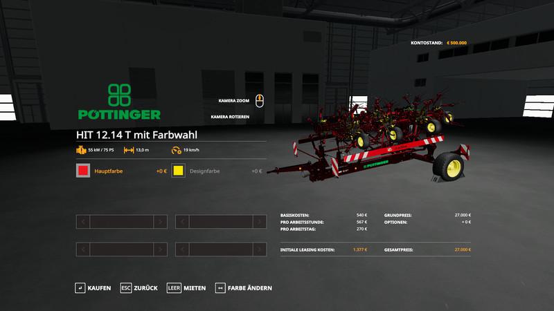 Standard tedder with a choice of color Working width: 13 Power Required: 75 Price: 27000 Brand: POETTINGER Category: Tedders