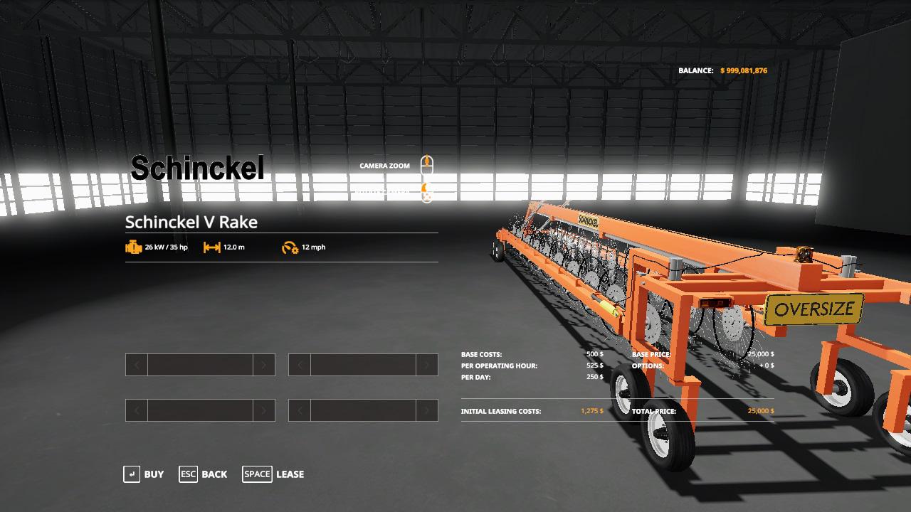 MOD SCHINKEL RAKE V1.0.0.0 FOR FARMING SIMULATOR 2019 Has a working width of 12 meters. All I did was update it to the last patch update and added a beacon at the back. Credits: Adub Modding |