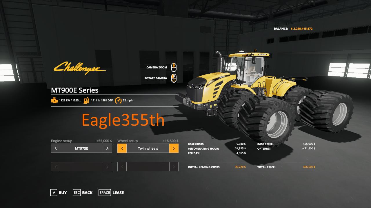 FS19 Beast Challenger MT900E Tractor 1525 HP Speed 50 Color Changeable Multicolor Washable No errors in log! Have fun enjoy! Credits: GIANTS Software, Eagle355th, Otis Little Bear Modding