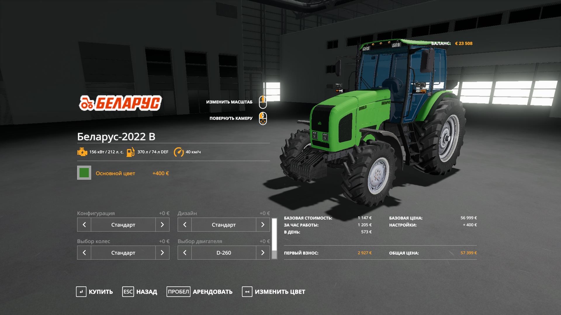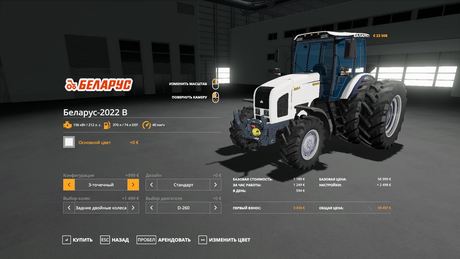 MOD BELARUS-2022 B V2.0 FOR FARMING SIMULATOR 2019 Made animation of the hood doors, sunroof windows and trunk lids using modas SimpleIC Made adjustable mirrors with a mouse Made a choice of colors Large selection in the store Animation of engine and fan vibration Alteration author: kulibin Original authors: Giedrius, Stas21, Pavel Lushnikov, Kiryukha, Jesse Lawrence, Relax ( Convert and Update)