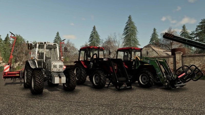 Specifications: Choice of engines (90-105 hp) Speed 42 km / h, GPS configuration (Muller Elektronik), front loader configuration (Stoll, MP-LIFT), rear wheel ballasts, front wheel bracket, illuminated interior. Slightly updated textures, gloss, scuffs, dirt, also added new wheels, front axle.