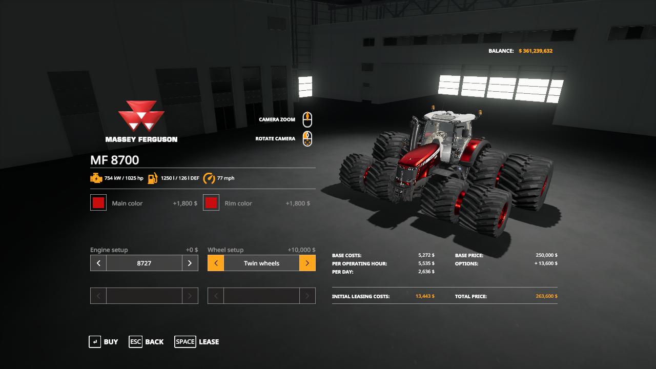 MOD EAGLE355TH MASSEY FERGUSON 8700 V1.0 FOR FARMING SIMULATOR 2019 Tractor with a choice of power 1025, 1250, 1550 hp Speed 75 mph Credits: EAGLE355TH |