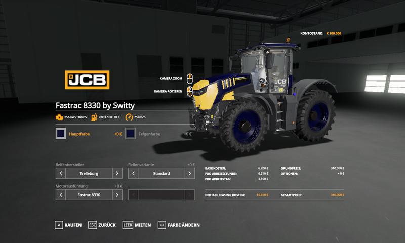 MOD FASTRAC 8330 V1.0.0.0 FOR FARMING SIMULATOR 2019 Standard tractor with added choice of base color, rim colors and new wheel types Credits: Giants/ Switty |