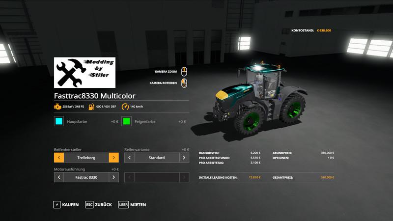 Мod Fasttrac 8330 Final v1.5 for Farming Simulator 2019 Version 1.5 Final Chrome color for choice and normal color Credits: Stiler |