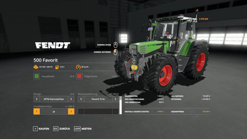 Mod Fendt 500 Tuning Edition BETA for Farming Simulator 2019 Changes: 1) Added color selection for discs and tractor. Credits: Ls Lohnunternehmen |