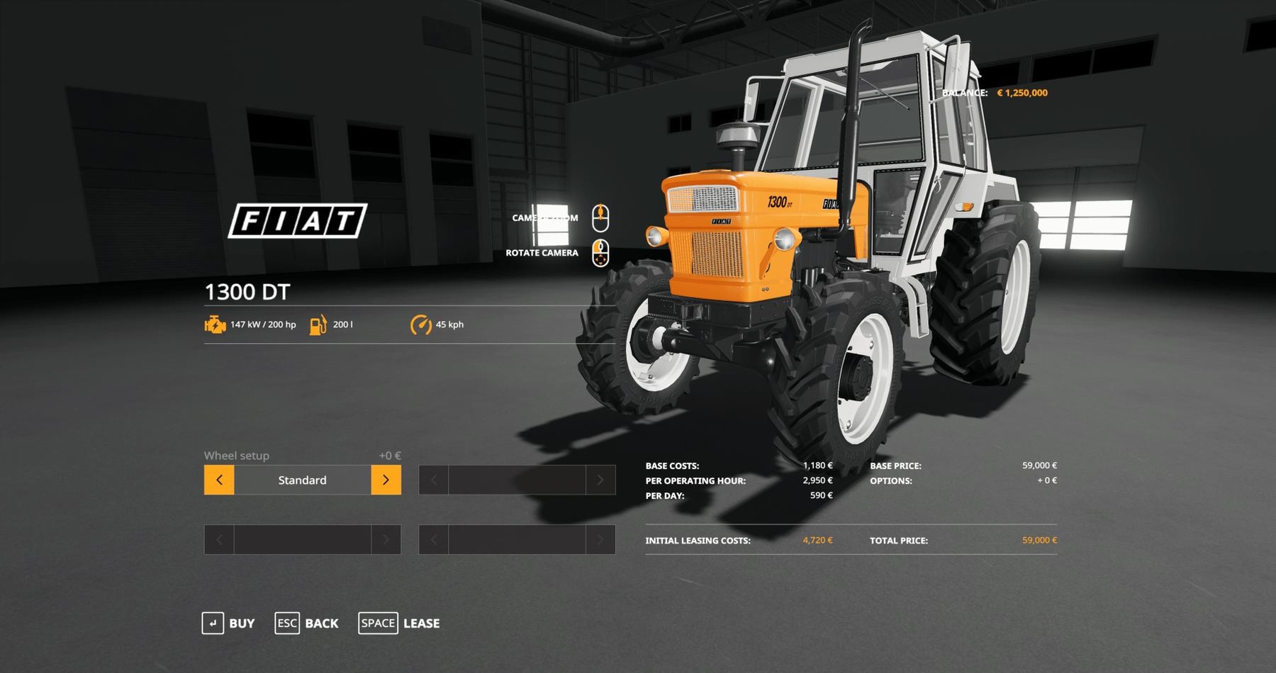 Fiat 1300 DT with 200 Hp and 45Km/h speed. Price: 59000 Brand: FIAT Please use this mod if you want more power and speed!