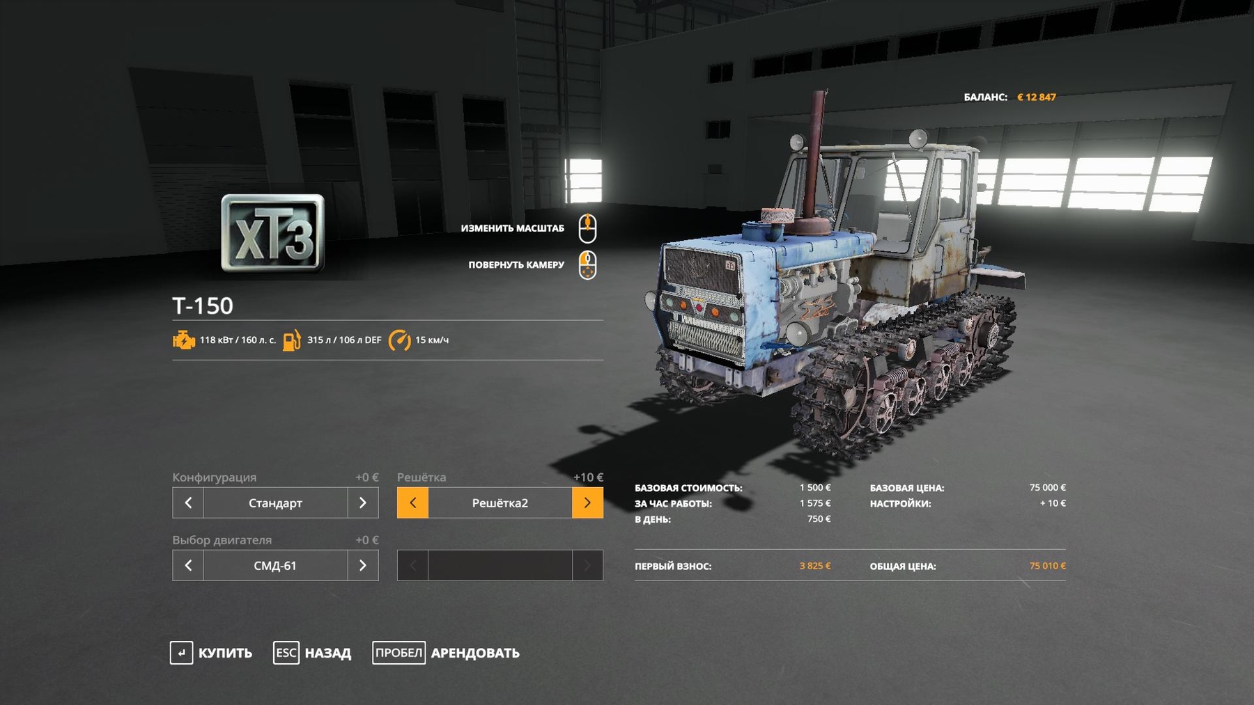Mod HTZ T-150 TRACK V2.0 for Farming Simulator 2019 He opened the door. He made a choice of several types of grilles. Changed the steering wheel. Changed the color. - Power: 118 kW / 160 hp.; - Speed: 15 km / h; - The volume of the fuel tank: 315 l.; - Cost: 75 000 €; - Design selection (air conditioning installed); - The choice of engine; - Animated cooling fan; - Working lighting; - Working dashboard; - leaves traces. Alteration Author: kulibin