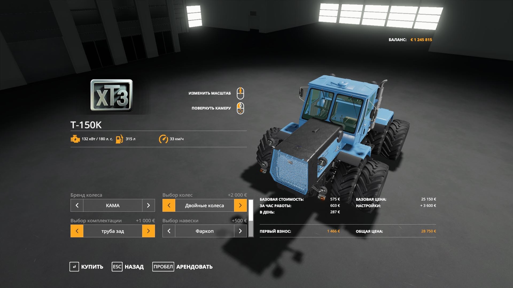 MOD HTZ T-150K V1.7.1.0 FOR FARMING SIMULATOR 2019 - Power: 175-300 hp (Depending on the engine); - Speed: 31-50 km / h (depending on the engine); - Fuel tank volume: 430 l .; - Cost: 70,000 €; - Wheel brand configuration; - Wheel configuration; - Configuration of the exhaust pipe / air filter; - Hitch configuration; - Headlight configuration; - License plate configuration; - Engine configuration; - Support for the "SimpleIC" script; - Script support: "UniversalPassenger". - Dynamic hoses; - Animated devices, pedals, levers, cooling fan, steps, cardan; - Working lighting equipment; - Working mirrors; - Leaves traces; - Gets dirty and washed. Added more tuning elements. Credits: RusAgroTeh |