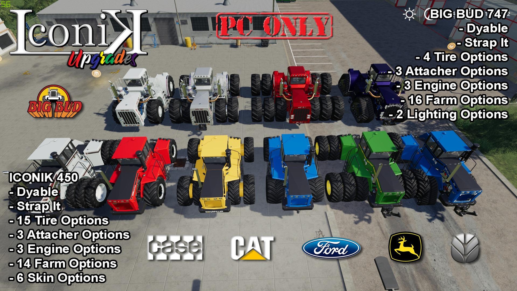 2 big tractors Big Buds 747 and 450, with modifications, added design choices, a choice of a front bumper or a three-point hitch, new engines and wheels. Credits: ICONIK |