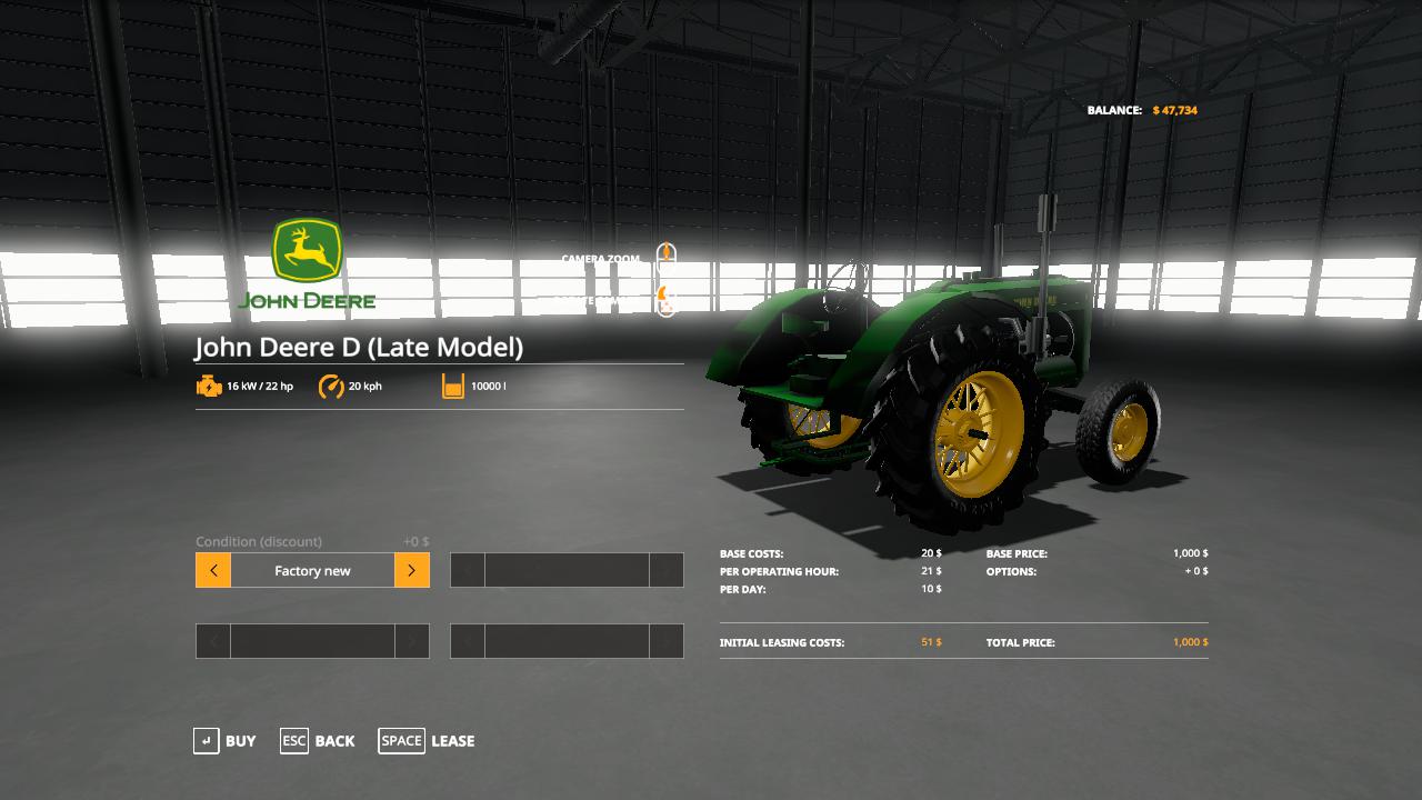 MOD JOHN DEERE D (LATE MODEL) V2.0.0.0 FOR FARMING SIMULATOR 2019 Credits: adub modding,Old Iron, Patton_M47 |