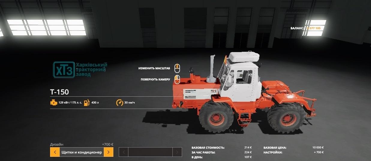Mod ХТЗ Т-150К V1.2 for Farming Simulator 2019 Price: 10.000; Power: 175 l / s; Speed: 31 km / h forward and 10 km / h back; The mod gets dirty and washed; He left one YaMZ 236 engine at 175 l / s .. Animations: - cooling fan; - cardan; - steering traction; - Gearbox, gas pedals and brakes. Additional information: working lighting equipment and instrument panel illumination. Version 1.2: Shaders are registered, now the mod should work fine. Waiting for your comments. Original author FS17: Clondike