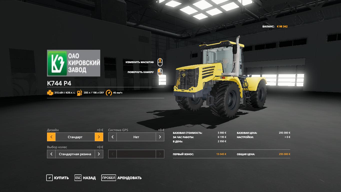 Mod KIROVEC-K744 R4 PREMIUM V2.6.2 for Farming Simulator 2019 - Power: 315 kW / 428 hp.; Authors: voiyka_13 (Vladimir Kuzinkin), Aluha74rus. Credits: Aluha74rus |