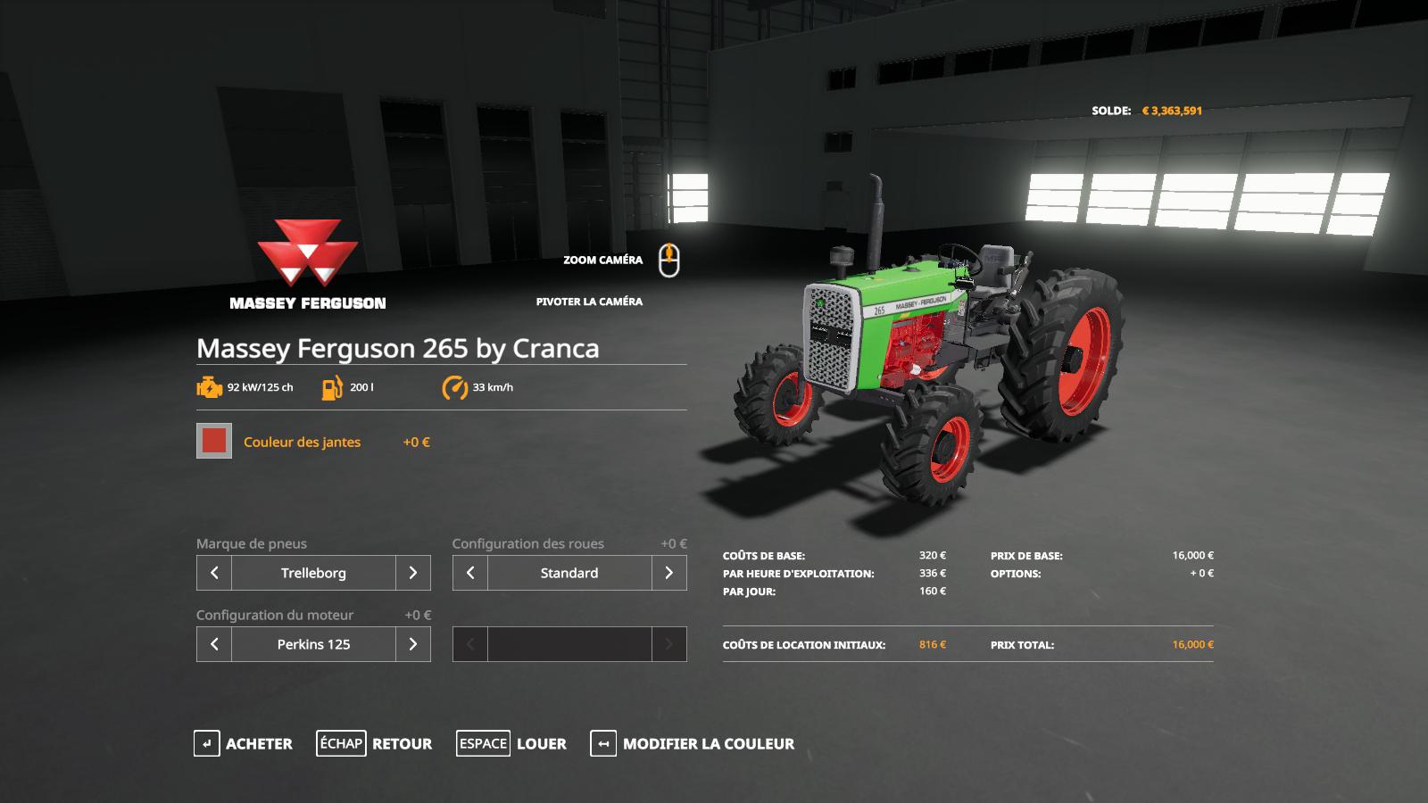 Massey Fergusson 275 for Farming simulator 19 New look New tire & engine 312 hp - 33km/h Price: 16 000€