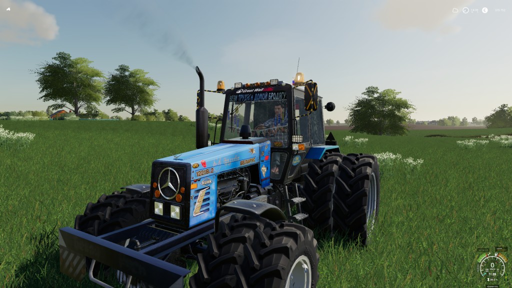 MOD MTZ 1221 APALKO V1.0.0.0 FOR FARMING SIMULATOR 2019 - Power: 96 kW / 130 hp; - Speed: 35 km / h; - Tank: 200 liters; - Cost: 17.560 €; - Replaced Wheels with Choice of wheel option (3 options) 1 one on Titans for Fun; - Working arrows; - Working illumination of devices; - Replaced all headlights and optics; - Simple IC is present. Opens doors, Hood, Windows. Putting on insulation; - Get dirty Wash; - Added Bumper Choice counterweight; - Added Choice of Hood, Fenders; - Added a choice of additional Headlights; - Added Curtain Selection; - Added Air Filter Selection; - Added Engine Choice 2 options; - Added a selection of flashing beads; - Added Select Flags, Belarus, Russia, Ukraine Animated; - Animated Pedal Levers; - Added Animated Mesh Curtain; Original author: corad60, Serega Zheltok, AvanGard. The author of the envelope and FS19 alterations: Gwailo.