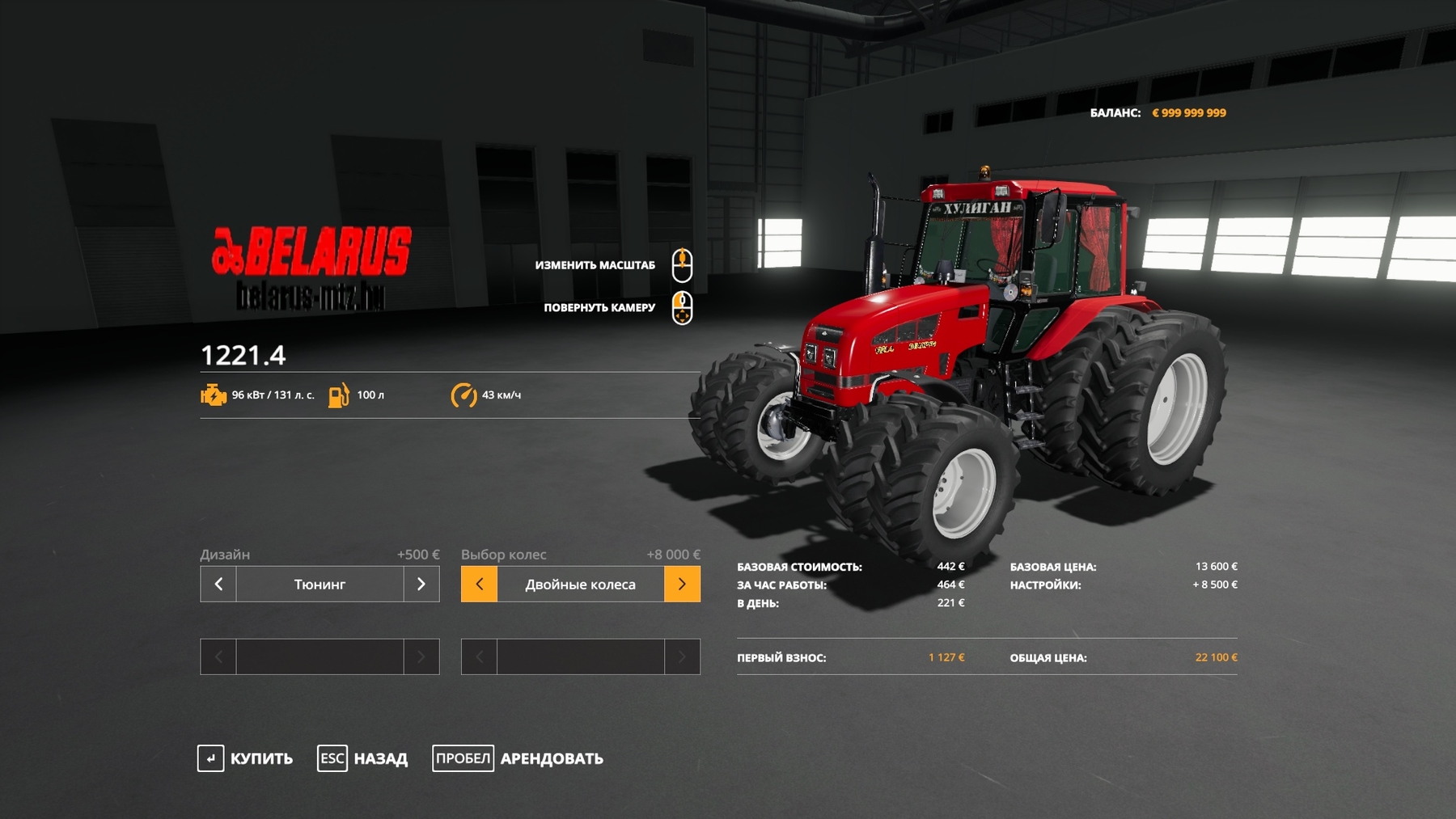 MOD MTZ 1221 BELARUS - REDUCTION V1.0.0.0 FOR FARMING SIMULATOR 2019 - Standard with rear spacers for twin; Credits: UIORMTZ |