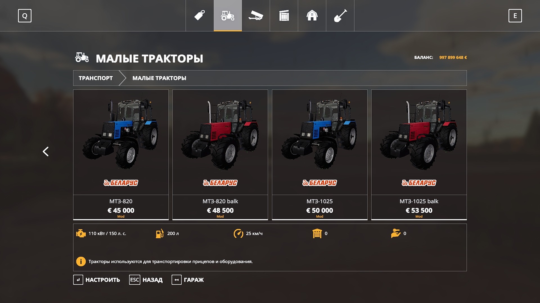 The mod includes 4 tractors: 2 MTZ-820 and 2 MTZ-1025.