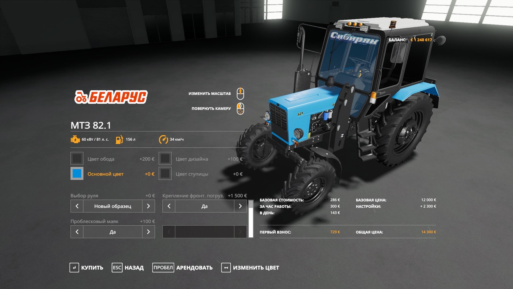 MOD MTZ 82.1 V1.0.0.0 FOR FARMING SIMULATOR 2019 Plant manufacturer: MTZ Additional options: Front loader PFN 0.9: Universal bucket 0.8: Universal bucket: Manure Fork: Bale fork: Pallet forks: Additional options: Credits: RusAgroTeh |