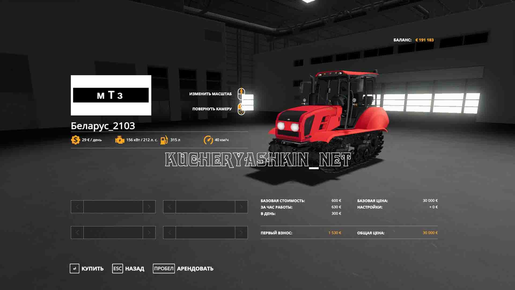MOD MTZ BELARUS 2103 V1.0.0.0 FOR FARMING SIMULATOR 2019 -Mod tractor Belarus Belarus 2103 - Power: 212 hp - Speed: 30 km / h; - Cost: 30,000 €; - Service cost per day: 0 €; - Working lighting equipment; - Leaves traces; - Gets dirty and washed. Authors: - = F @ RMeR = - Vovk @ FarmeR Convert to Fs19: Kucheryashkin