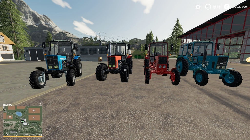 MOD MTZ Pack v0.5 FOR FARMING SIMULATOR 2019 Added MTZ 80 front end with different wheel options, MTZ 82 axle with different wheels, girder bridge and a new bridge from MTZ 82.1, also loaders pc 0.8, ps 0.8, stack machine, forks, buckets, forks for pallets and big bags, counterweight , triangle, 5 types of engines with different sounds, replacement of the main color, disc color, design, cab, loaders, counterweight, animation of everything on all tractors, doors, windows, hatches, hoods Credits: Sergey Shumarin |