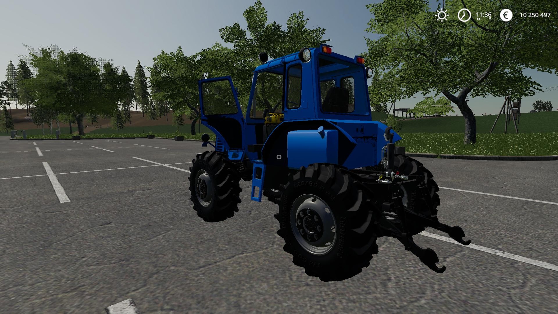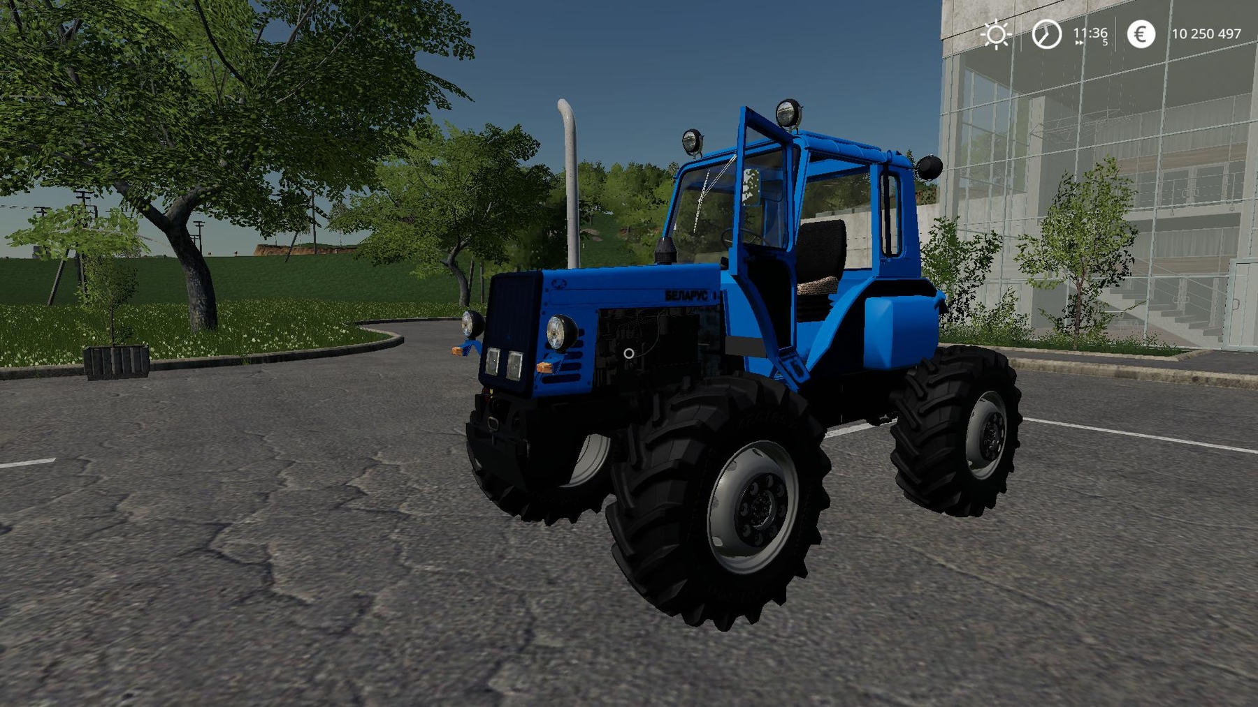 The tractor is assembled from several tractors. Animation of parts. Start animation. Very real physics of the suspension. Choice of several mounts for the front. Choice of cab color, design and wheels. Choice of wheels and brand. And much more. More details on the video below.