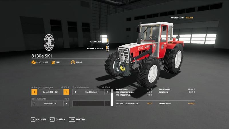 Мod STEYR 8130a Turbo SK1 basic version v1.1.0 for Farming Simulator 2019