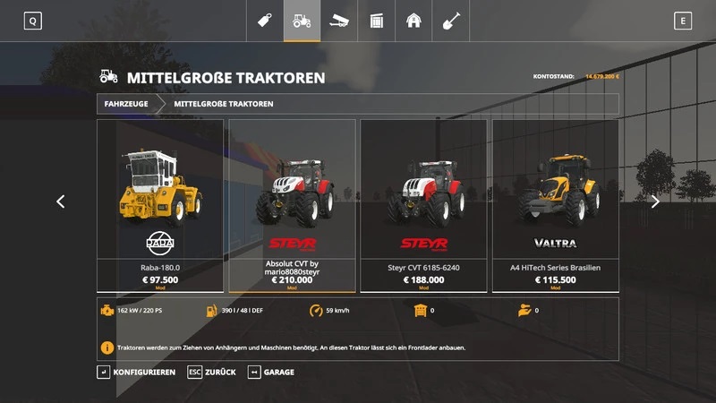 Mod STEYR ABSOLUTE CVT BLACK BEAUTY V1.0.0.0 for Farming Simulator 2019 Here the Steyr Absolut cvt in black modded from scratch by me. Available engine configurations: Maximum speed: 50 km/h Credits: mario8080 |