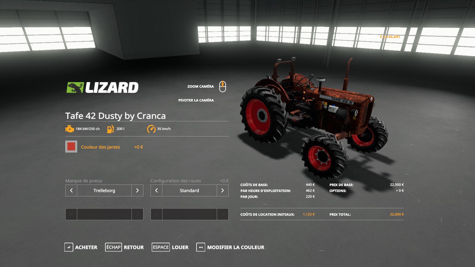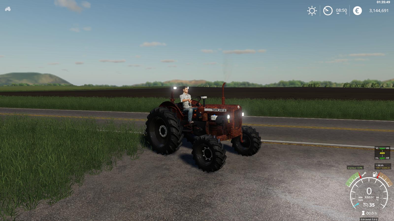 The TAFE 42 tractor is old and rusty for FS 19. The appearance of the tractor is corrected, the engine power is 250 hp, max. speed 35 km / h, fixed lighting and animation of the steering wheel. Credits: CRANCA |